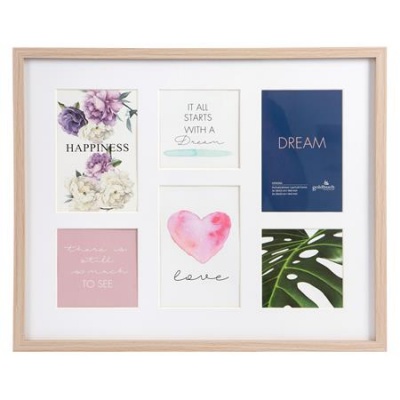 Képkeret, galéria, fa, 3 db 10x10, 3 db 10x15, "Goldbuch Verona", natúr
