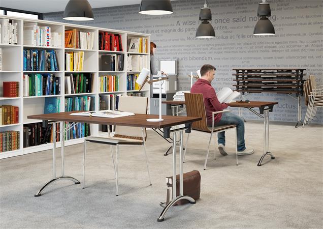 összecsukható tárgyalóasztal, behajtható krómozott fémlábakkal