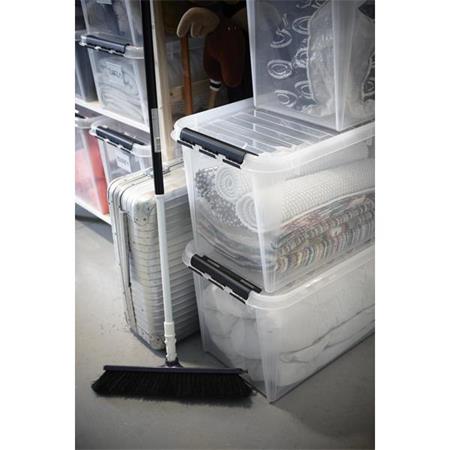 Műanyag tárolódoboz, 70 liter, fekete fogantyúkkal, SMARTSTORE "Classic 70", átlátszó