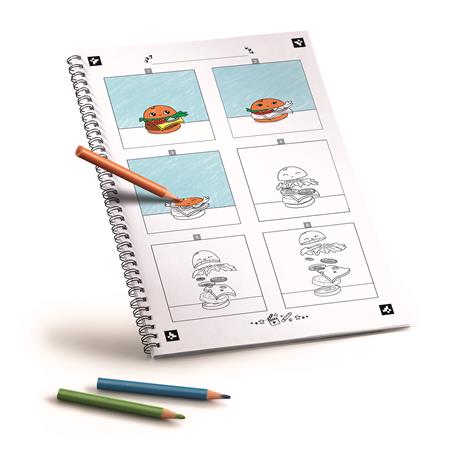 -12 féle kiszínezhető történet áll rendelkezésre a  készletben, de lehetőség van saját mini rajzfilm készítésére is