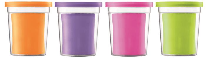 4 tégely különböző színű gyurma (4*114 g): lila, zöld, narancssárga és rózsaszín