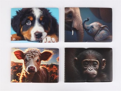 Diák- és igazolványtartó, fekvő, 6 betét lappal, mintás PVC, "Többlapos", állatok