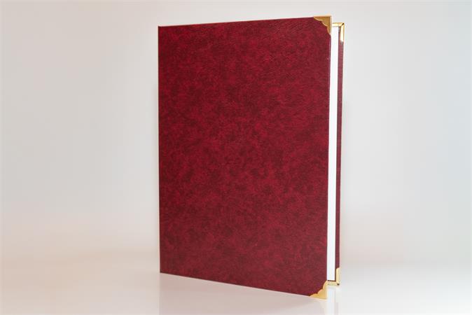 Oklevéltartó, A4, exkluzív, műbőr, 4 fém sarokkal, bordó
