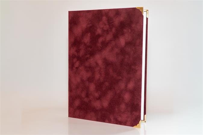 Oklevéltartó, A4, exkluzív, plüss, 4 fém sarokkal, bordó