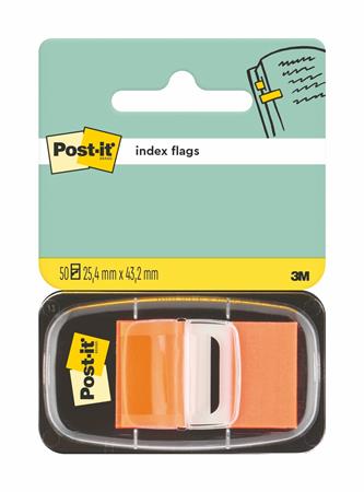 Jelölőcímke, műanyag, 50 lap, 25x43 mm, 3M POSTIT, narancs