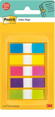Jelölőcímke, műanyag, 5x20 lap, 12x43 mm, 3M POSTIT, vegyes