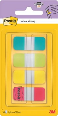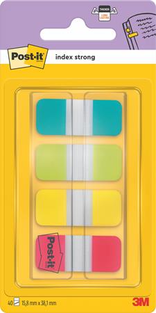 Jelölőcímke, műanyag, megerősített, 4x10 lap, 16x38 mm, 3M POSTIT, vegyes színek
