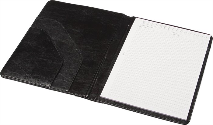 a baloldalán 2 zsebbel, jobb oldalán kivehető vonalas jegyzettömbbel