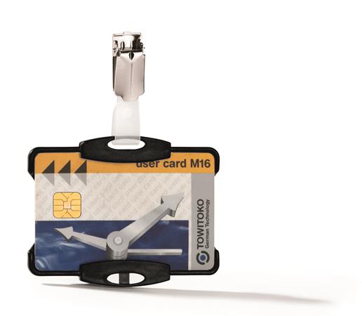 Nyitott kivitelű azonosítókártya-tartó.