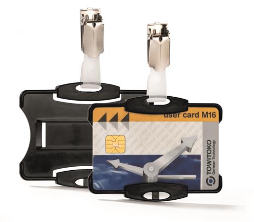Azonosítókártya-tartó, 54x85 mm, csiptetővel, DURABLE, fekete