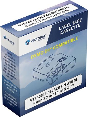 Feliratozógép szalag, 9 mm x 7 m, VICTORIA TECHNOLOGY, fehér-fekete