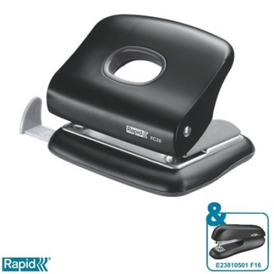 Lyukasztó, kétlyukú, 20 lap, RAPID "FC20", fekete
