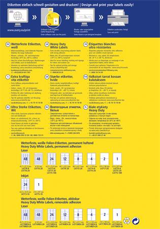 KezdőlapIrodaszerekIrodai papíráruEtikettekEtikett, 99,1x42,3 mm, poliészter, időjárásálló, AVERY ZWECKFORM, fehér, 240 etikett/csomag