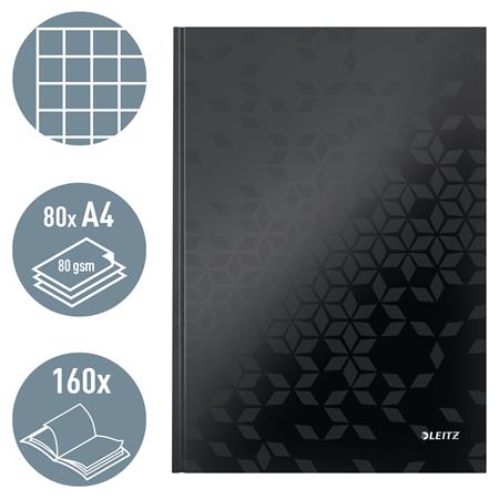 Beíró, A4, kockás, 80 lap, keményfedeles, LEITZ "Wow", fekete