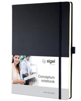 KezdőlapIrodaszerekIrodai papíráruFüzetek, gyűrűskönyvbetétekJegyzetfüzet, exkluzív, A4, vonalas, 97 lap, keményfedeles, SIGEL "Conceptum", fekete