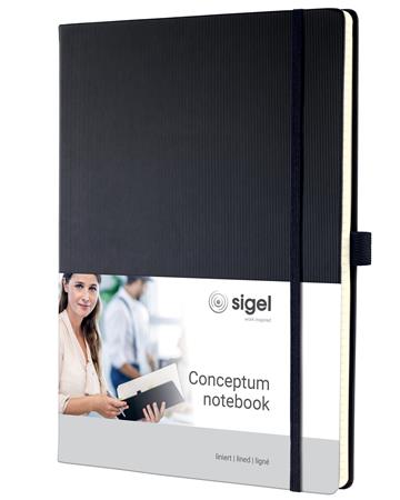 Jegyzetfüzet, exkluzív, A4, vonalas, 97 lap, keményfedeles, SIGEL "Conceptum", fekete