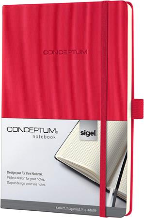 Jegyzetfüzet, exkluzív, A5, kockás, 97 lap, keményfedeles, SIGEL "Conceptum", piros