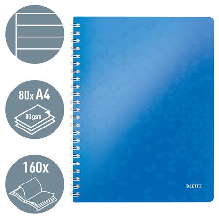 KezdőlapIrodaszerekIrodai papíráruFüzetek, gyűrűskönyvbetétekSpirálfüzet, A4, vonalas, 80 lap, LEITZ "Wow", kék