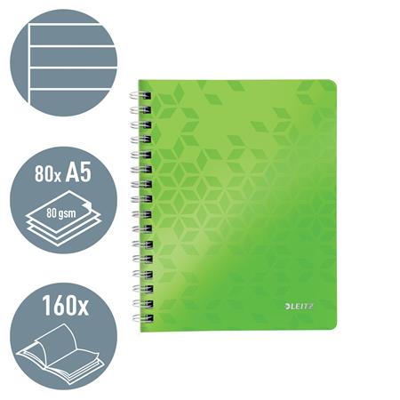 Spirálfüzet, A5, vonalas, 80 lap, LEITZ "Wow", zöld