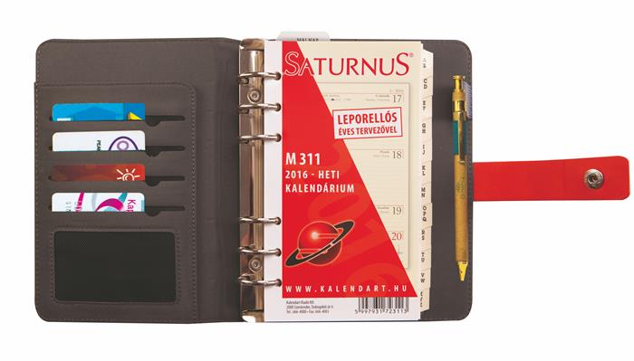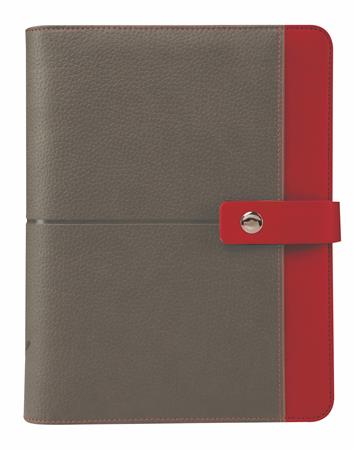 Kalendárium, gyűrűs, betétlapokkal, "L", műbőr, SATURNUS, "426", szürke-piros