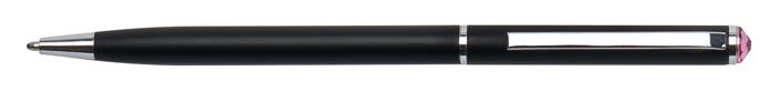Golyóstoll, fekete "SLIM", rózsaszín SWAROVSKI® kristállyal, 13 cm, ART CRYSTELLA®