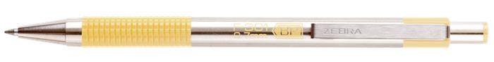 Golyóstoll, 0,24 mm, nyomógombos, rozsdamentes acél, pasztellsárga tolltest, ZEBRA "F-301", kék
