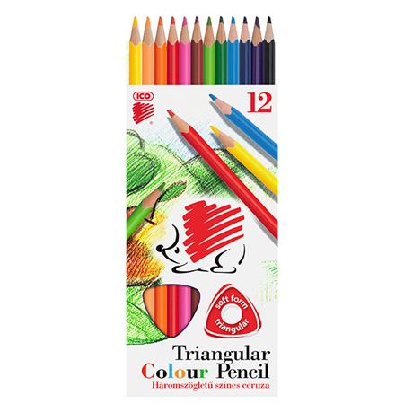Színes ceruza készlet, háromszögletű, ICO "Süni", 12 különböző szín