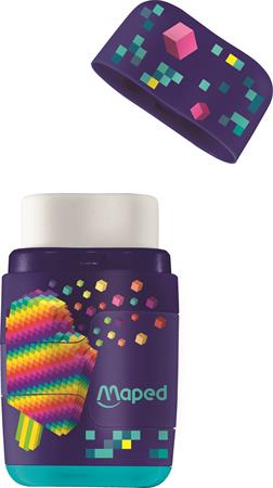 Hegyező és radír, kétlyukú, tartályos, pótradírral, MAPED "Pixel Party Connect"