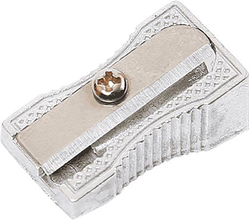 Grafit vagy színes ceruzák hegyezésére alkalmas fém faragó. A penge egy csavarral van rögzítve, így adott esetben élezhető is. Recézett tetejének köszönhetően kis mérete ellenére sem csúszik el a kézben hegyezés közben. A fémből készült hegyező rendkívül strapabíró, és a tolltartóban sem foglal sok helyet. Irodákba, iskolákba vagy akár otthonra is tökéletes választás.
