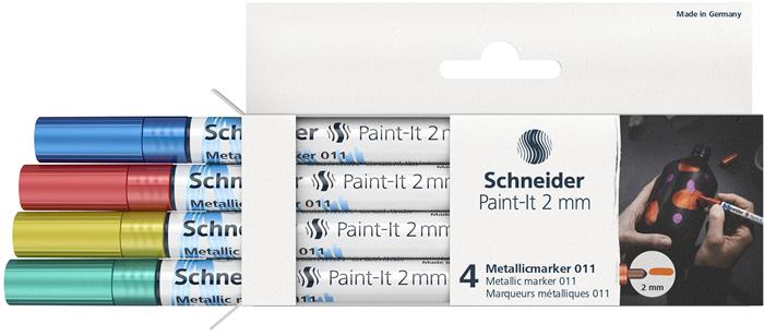 Akrilmarker készlet, 2 mm, SCHNEIDER "Paint-It 011", 4 különböző metálszín