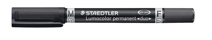 Alkoholos marker, 0,6/1,5 mm, kúpos, kétvégű, STAEDTLER "Lumocolor® duo 348", fekete