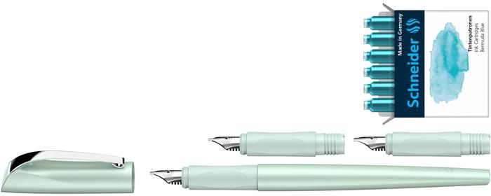 Töltőtoll ajándékszett, 1,1 mm, ajándék 1,5 és 1,8 mm-es tollheggyel, SCHNEIDER "Callissima", mentazöld