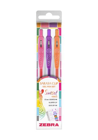 Zseléstoll készlet, 0,25 mm, nyomógombos, ZEBRA "Sarasa Clip Sunset", 3 különböző szín