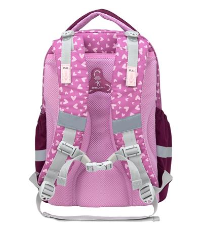 -állítható mellkaspánt, amely segít a terhelés egyenletes elosztásában, tehermentesítve a gyermek hátát és vállát – különösen ideális kisebb testalkatú gyermekek számára
