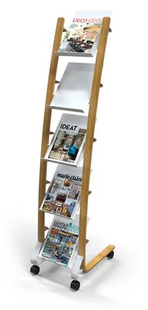 Katalógustartó, mobil, 5 rekeszes, ALBA, fa/fehér