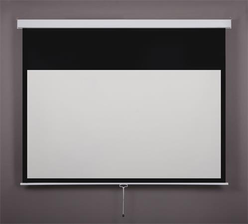kézi mozgatású, rolós vetítővászon, lassított visszahúzású mechanikával
