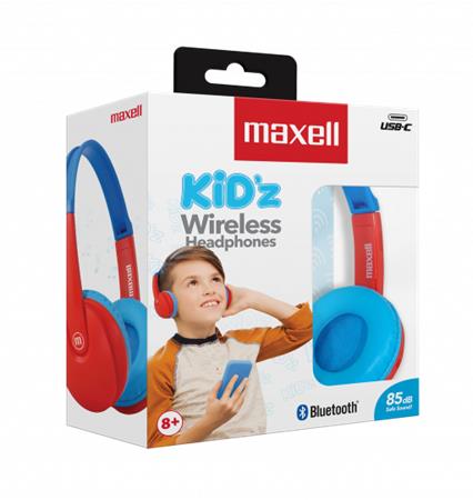 Fejhallgató, gyerek méret, vezeték nélküli, Bluetooth, mikrofonnal, MAXELL "HP-BT350", kék-piros