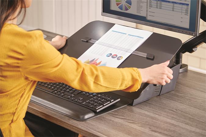 A platform könnyen előrecsúsztatható, így kevesebb helyet foglal az íróasztalon
