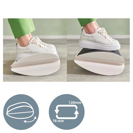 A Leitz Ergo asztali lábtámasz tökéletes a kényelmes és aktív munkaterület kialakításához. Az ülés közbeni maximális kényelem biztosítására tervezett irodai lábtartó ötvözi a hintáztatható és az állítható magasságú lábtámasz előnyeit. Az állítható magasságú irodai lábtartó 2 magassági beállítással, valamint egyik oldalról lapos, másik oldalról ívelt platformmal rendelkezik a helyes ergonomikus testtartás biztosításához. Hintáztasd lábaidat munka közben az egészséges vérkeringés és hatékonyság növelése érdekében. Ez a stílusos, minimál kialakítású, matt felületű lábtámasz hozzájárul az aktív munkaállomás kialakításához, ezáltal pozitív hatással lehet a jólétre. Más Leitz Ergo termékekkel kombinálva hívogató és rugalmas munkaterületet biztosít, hogy egész nap aktív és produktív maradhass.