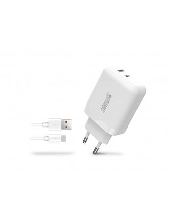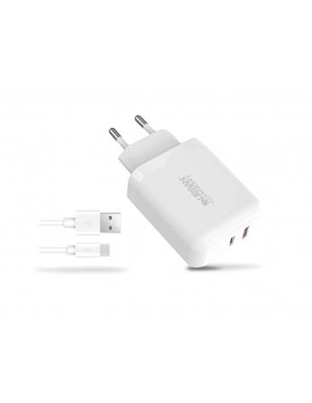 Hálózati töltő, 1xUSB-A (18W), 1xUSB-C (45W), USB-A–USB-C kábel, URBAN FACTORY
