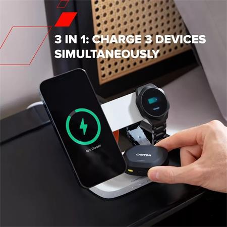 A Hexagon WCS310 3 az 1-ben funkciójával egyszerre képes feltölteni a telefonodat, az okosórádat és a fülhallgatódat anélkül, hogy zsúfoltságot vagy összegubancolódott kábeleket okozna. Még soha nem volt ilyen egyszerű felkészülni a napra, vagy lefeküdni estére minden szükséges eszközöddel feltöltött állapotban. Akár sietve töltöd fel a telefonodat, akár egy éjszaka alatt töltöd fel teljesen, ez a töltő hatékonyan biztosítja az energiát.