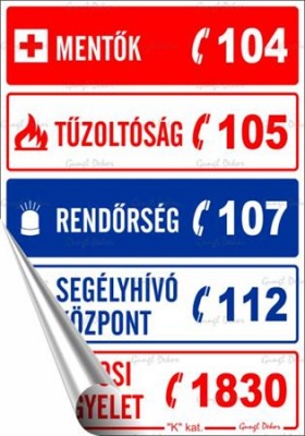 Segélyhívószámok információs matrica
