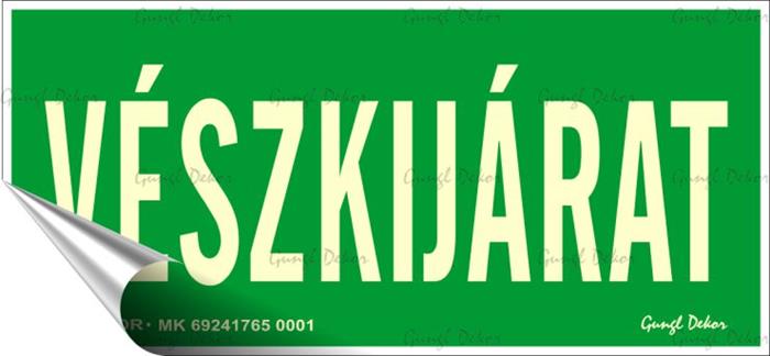 KezdőlapÜzemeltetésLétesítmény üzemeltetésInformációs és tájékoztató jelekInformációs matrica, 25x11,5 cm, fluoreszkáló, utánvilágítós, "Vészkijárat"