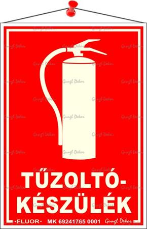 Információs tábla, 12,5x17,5 cm, fluoreszkáló, utánvilágítós, "Tűzoltókészülék"