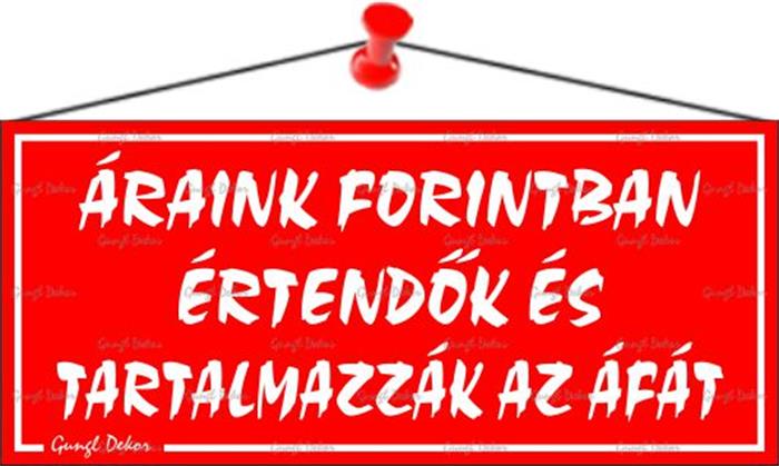 Áraink forintban értendők és tartalmazzák az áfát! információs tábla