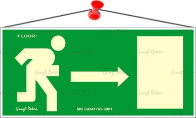 Információs tábla, 25x11,5 cm, fluoreszkáló, utánvilágítós, "Menekülési irány jobbra"