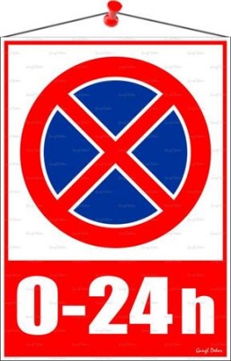 Megállni tilos 0-24 piktogram, információs tábla