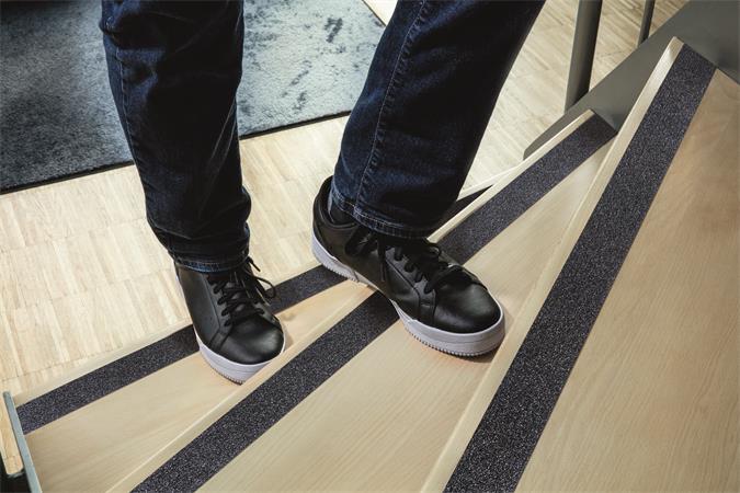 Szabványnak megfelelő öntapadós csúszásgátló szalag, ami segít az utak, lépcsők vagy rámpák csúszámentesítésében.