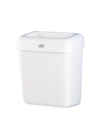 A 20 literes Tork hulladékgyűjtő jól illeszkedik különféle mosdóhelyiségekbe, szükség esetén akár a falra is felszerelhető, vagy a padlóra is helyezhető.