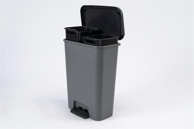 Pedálos szemetes, téglalap alakú, 2x23 l, CURVER "Compatta Duo", sötétszürke